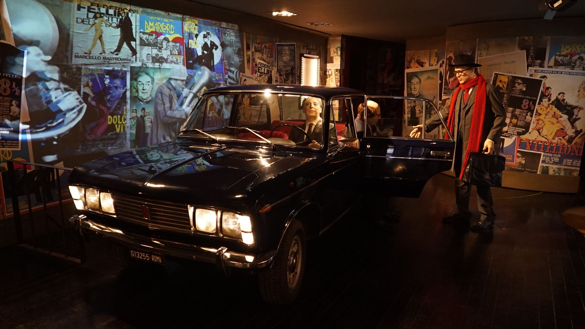 The exhibition was created by production designer Dante Ferretti, who was one of the architects behind Fellini’s visions, and Francesca Lo Schiavo, the Academy Award winning set designer and decorator. Divided across three rooms, the exhibition features film posters, a vintage Fiat 125 symbolising "the frequent journeys taken by Fellini and Ferretti together", a room dedicated to Fellini’s City of Women (1980), and another room representing the Fulgor Cinema from Fellini’s childhood in Rimini (Cinecittà si Mostra, “Fellini Building”).
